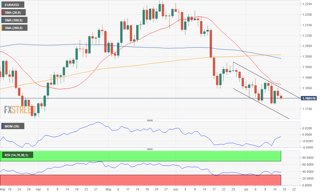 The American dollar edged higher in the second week of July, with EUR/USD settling at around 1.1800 after bottoming at 1.1771. Financial markets kept taking hints from central banks and growth-related figures for direction.
