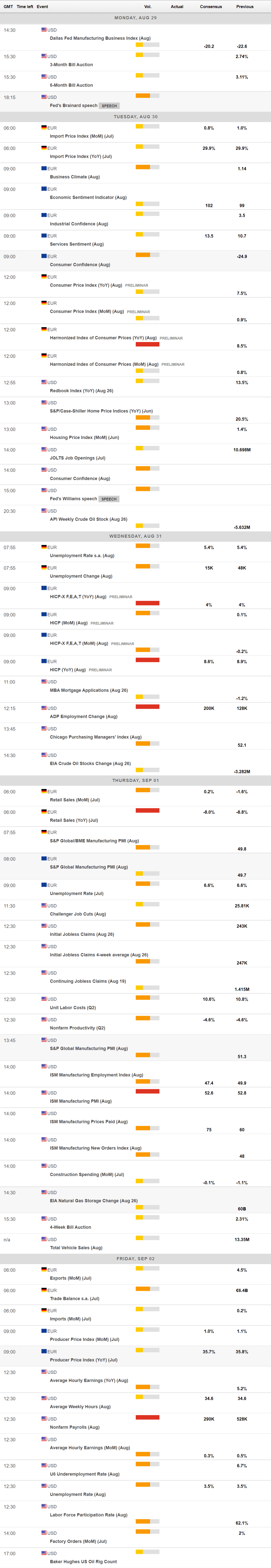 The upcoming week will bring the preliminary August inflation estimates for Germany and the EU, while the US will publish the monthly Nonfarm Payroll report and the official August ISM Manufacturing PMI.