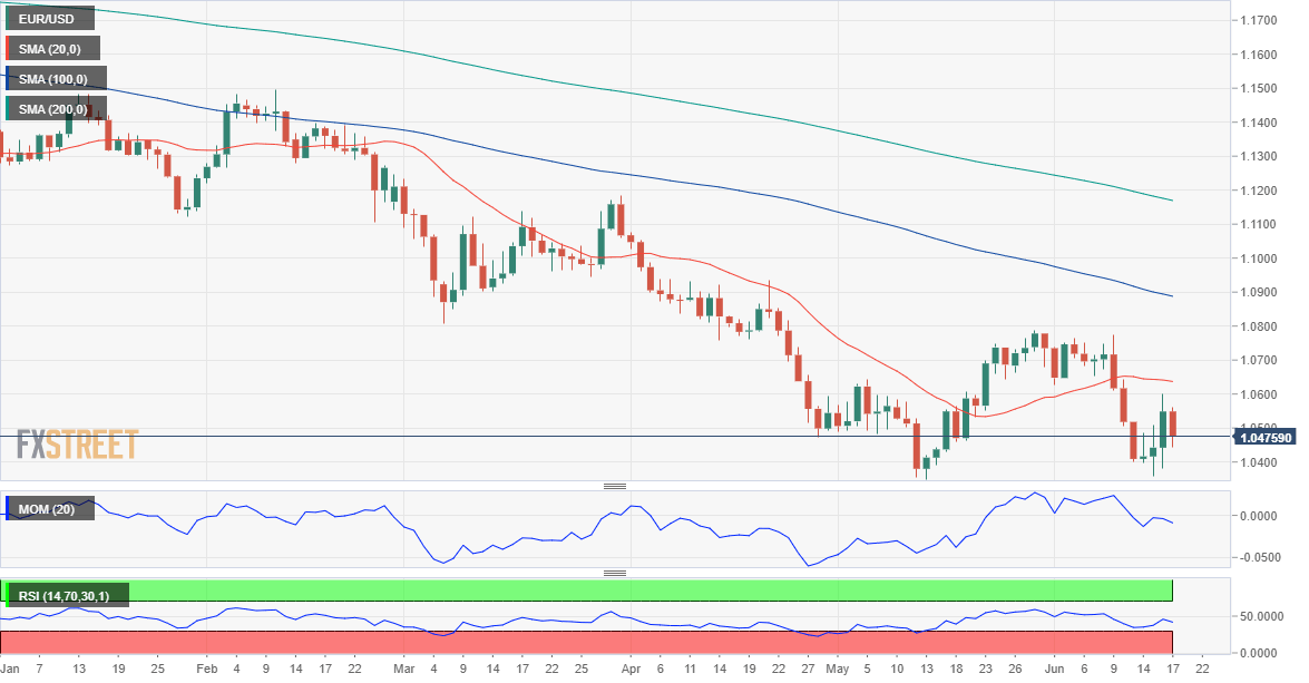 The risk is also skewed to the downside, according to the daily chart. The pair plummeted below its 20 SMA last week, and the recent recovery fell short of testing it, now providing dynamic resistance at around 1.0640. The 100 and 200 SMAs accelerated their slides and maintained their firmly bearish slopes well above the current level, while technical indicators resumed their declines within negative levels.