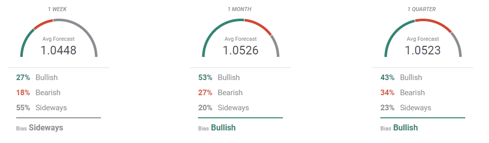 According to the FXStreet Forecast Poll, the EUR/USD pair may soon find an interim bottom. The weekly perspective shows most polled experts expect the pair to hold around the current price zone, with an average target of 1.0448. Bulls, on the other hand, take over the monthly and quarterly views, although the pair is barely seen recovering above the 1.0500 threshold.
