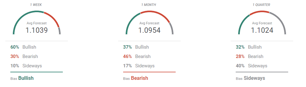 According to the FXStreet Forecast Poll, the EUR/USD pair will likely extend its consolidative phase next week, although most polled experts aim for slightly higher levels. The pair is likely to remain within the 1.0900/1.1100 area, with just one outsider betting for 1.1200. Overall, bulls dominate the scene as 60% of the polled experts are looking for higher levels in the near term. The outlook turns bearish in the monthly perspective, with buyers declining to 37% and bears surging to 46%. Still, the pair is seen on average at 1.0954. Finally, the pair is seen neutral in the quarterly view and averaging 1.1024.