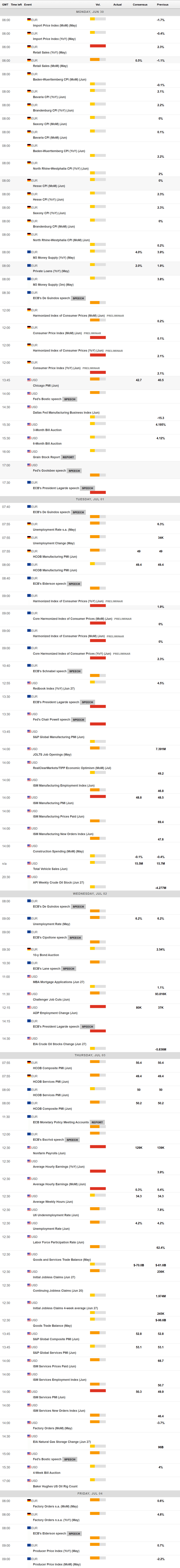 In the upcoming days, the macroeconomic calendar will be a bit busier. Germany will release May Retail Sales and the preliminary estimate of the June Harmonized Index of Consumer Prices (HICP) on Monday. The Eurozone will also release the HICP figures for the same period on Tuesday, followed by the US ISM Manufacturing PMI.