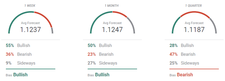 According to the FXStreet Forecast Poll, the EUR/USD pair could hold ground above the 1.1200 level, but it is expected to turn bearish in the quarterly perspective. In the near term, bulls are a majority but fall to 28% in the longer view, with bears in fact at 47%. The pair is then seen on average at 1.1187.