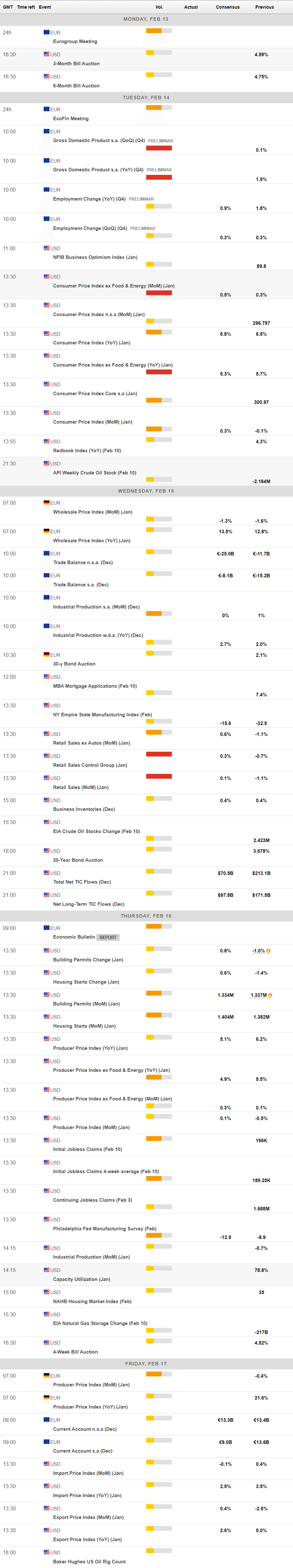 - The United States will publish the January Consumer Price Index next Tuesday.
