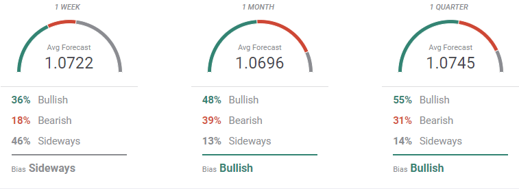 The FXStreet Forecast Poll suggest that buyers are losing interest. Most polled analysts see the pair hovering around the current price zone, leaving an average target of 1.0722. The longer-term perspectives, however, are still dominated by bulls, which stand for 48% in the monthly view and 55% in the quarterly one. Some firmly bearish institutions skew the average down, but taking a look at the spread of potential targets, it seems that the upward trend will resume after a sharp downward correction.