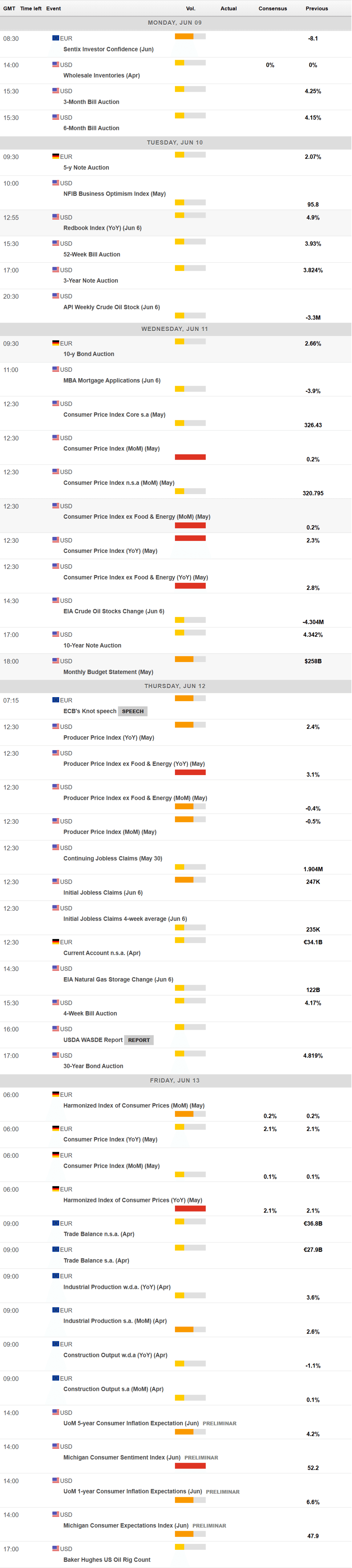 On the data front, the US will release the May Consumer Price Index (CPI) on Wednesday, expected to remain unchanged at 2.3% on a yearly basis. Germany will also post an inflation update, publishing the May Harmonized Index of Consumer Prices (HICP) on Friday. Finally, the US will unveil the June Michigan Consumer Sentiment Index, previously at 52.2.