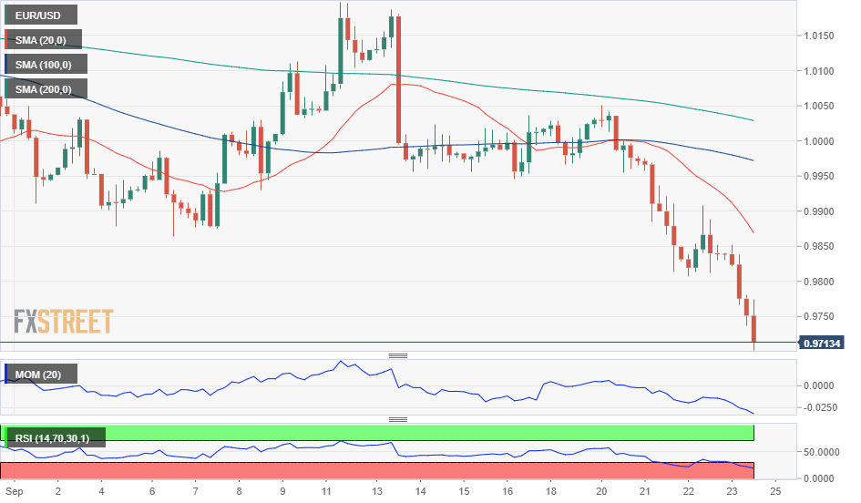 The EUR/USD pair plummeted to 0.9706 on Friday, its lowest since October 2002, to end the week with sharp losses at around 0.9720. Financial markets were on hold throughout the first half of the week, ahead of first-tier events.