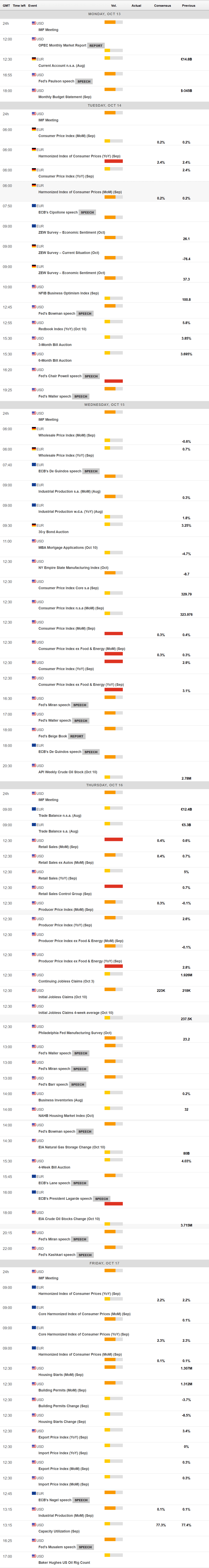 By the end of the week, however, her future as PM was put in doubt after Japan’s ruling coalition broke up on Friday. The LDP holds the largest majority of seats, but it’s short of a majority. For the past 26 years, it has formed a coalition with the Komeito party, which ended after the head of Komeito, Tetsuo Saito, said the LDP failed to provide sufficient answers regarding political funding issues. The JPY recovered modestly with the news, but the broad USD keeps USD/JPY up by roughly 500 pips by the end of the week.