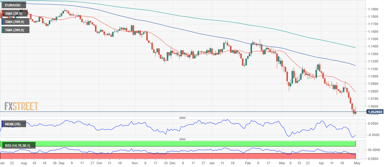 It will not be just the Fed meeting next week. The Bank of England will also announce its monetary policy decision, while the US will publish the Nonfarm Payrolls report on Friday. The country is expected to have added 400K new jobs in April, while the unemployment rate is foreseen steady at 3.6%. Employment is one of the two legs on which the Fed’s decision rests, although it’s not policymakers' main concern now. The job sector has been recovering steadily after the first year of the pandemic and has taken the pressure off the Fed from that perspective. Still, the monthly report could clarify the general picture of US economic progress.