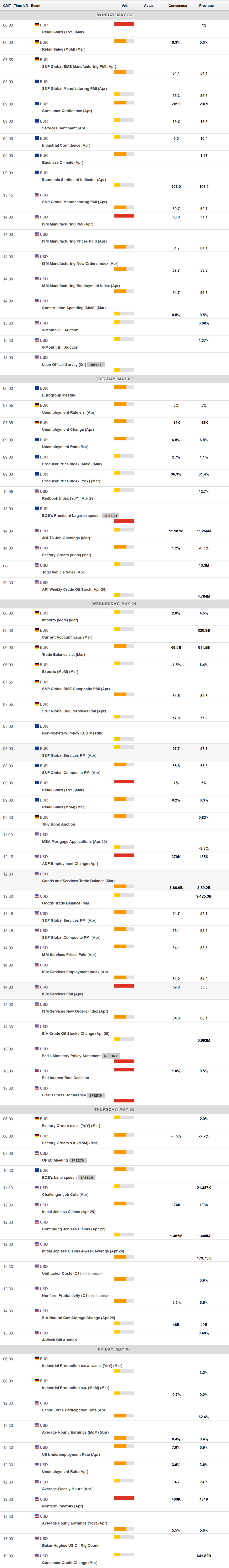 Also, the US will release the April ISM Manufacturing PMI, foreseen improving from 57.1 to 58.0 and the ISM Services PMI, seen at 59.0.
