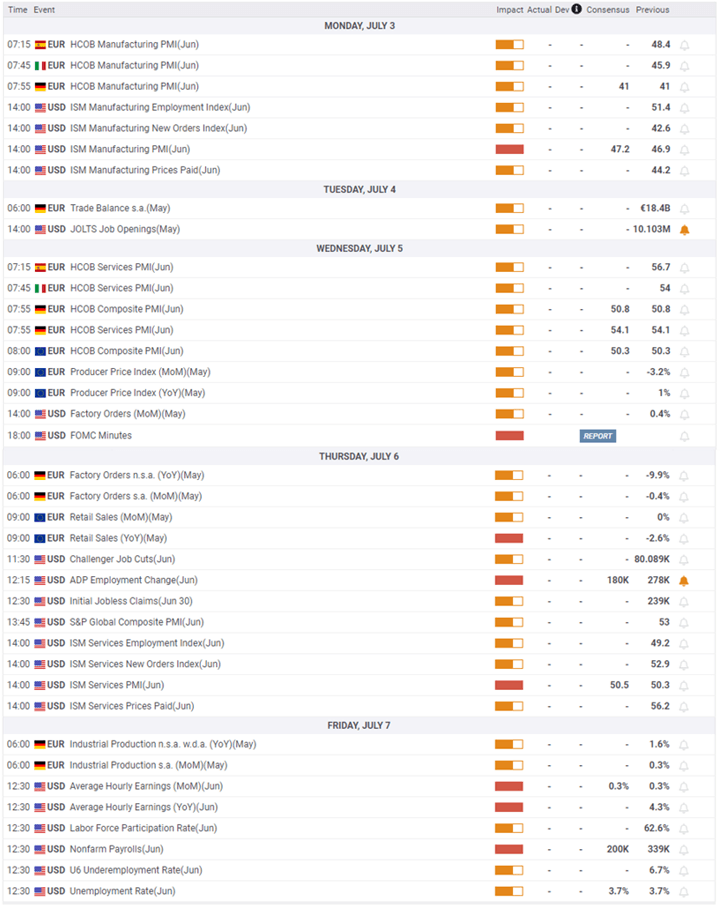 Risk sentiment will continue to be important for the Euro. However, the dynamic regarding the US Dollar will also be crucial for EUR/USD. Although being a shortened week in the US, with markets closed on July 4 due to Independence Day, in terms of economic data, it will be an important week, with focus on activity and labor market numbers.
