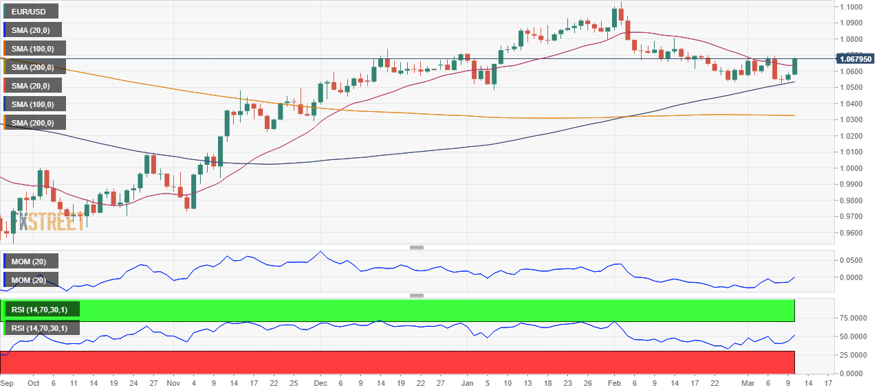 - EUR/USD bullish potential remains limited, 1.0745 stands in the way for bulls.
