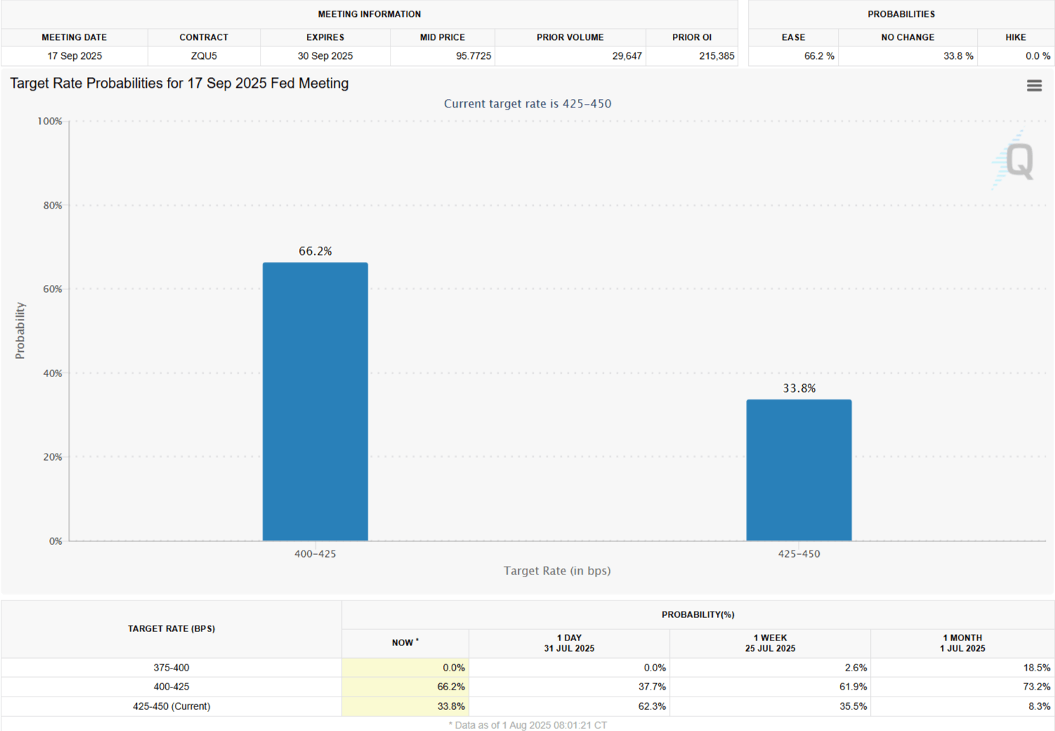 The news put the US Dollar in sell-off mode. Following the Fed’s monetary policy announcement, speculative interest ran to bet on an on-hold decision in September, with the odds for a no-change surging to roughly 60%. However, the awful monthly employment report flipped the sentiment, and market players now believe there is more than a 66% chance of a rate cut at the upcoming Fed meeting, according to the CME FedWatch Tool.