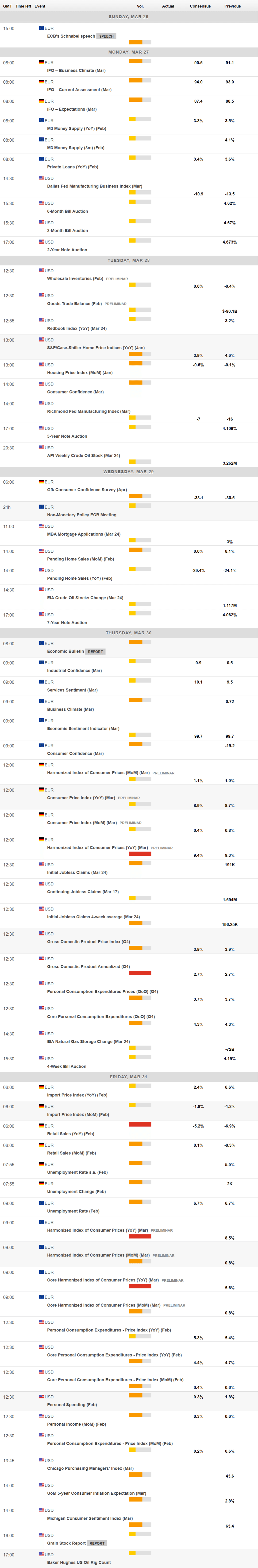 United States figures were mixed, as housing and employment-related data were encouraging, but Durable Goods Orders declined 1% MoM in February.