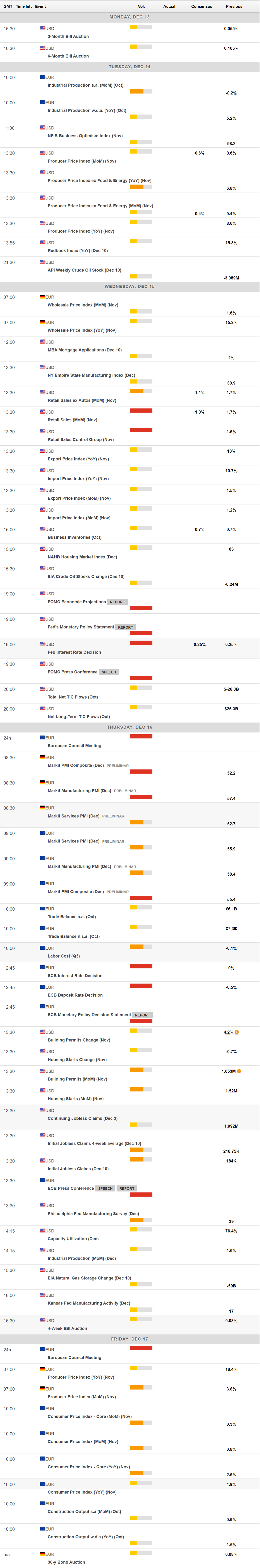 Beyond central bank decisions, the macroeconomic calendar next week will include November US Retail Sales, seen going up by 1% MoM, and the December preliminary Markit PMIs.