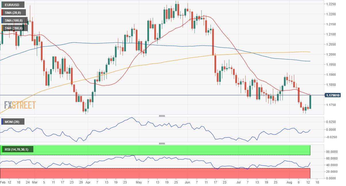 - EUR/USD has bounced from around 1.1700, but bears retain control.