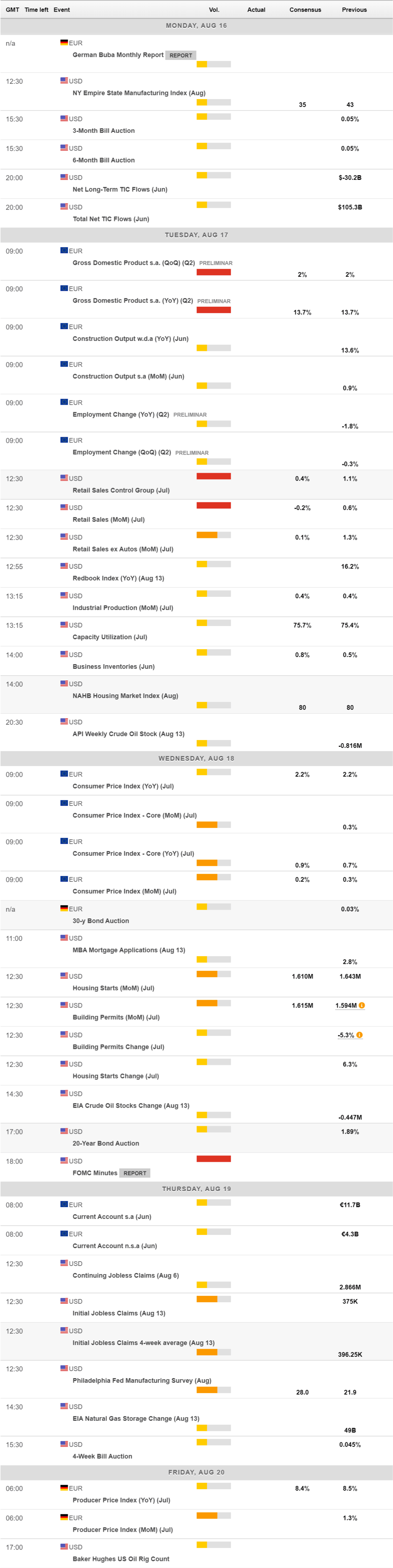 On Tuesday, the EU will publish its Q2 Gross Domestic Product, while the US will release July Retail Sales, the latter seen declining 0.2% MoM. On Wednesday, the US Federal Reserve will publish the Minutes of its latest meeting.