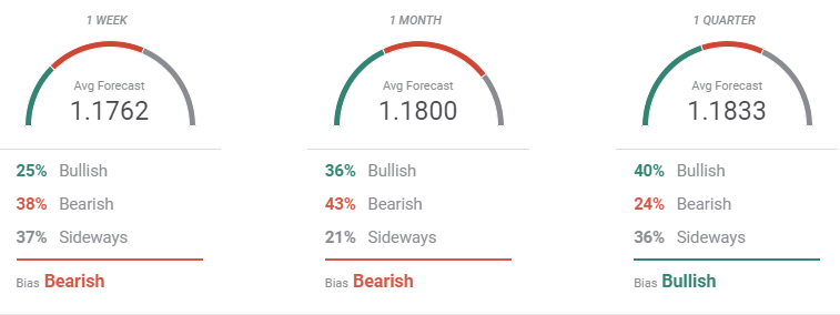 The FXStreet Forecast Poll shows that speculative interest keeps favouring the greenback. The EUR/USD pair is seen bearish in the weekly and monthly perspectives. Bulls reappear in the quarterly view, although they stand at 40% of the polled experts. The pair is seen on average, hovering around the 1.1800 figure.