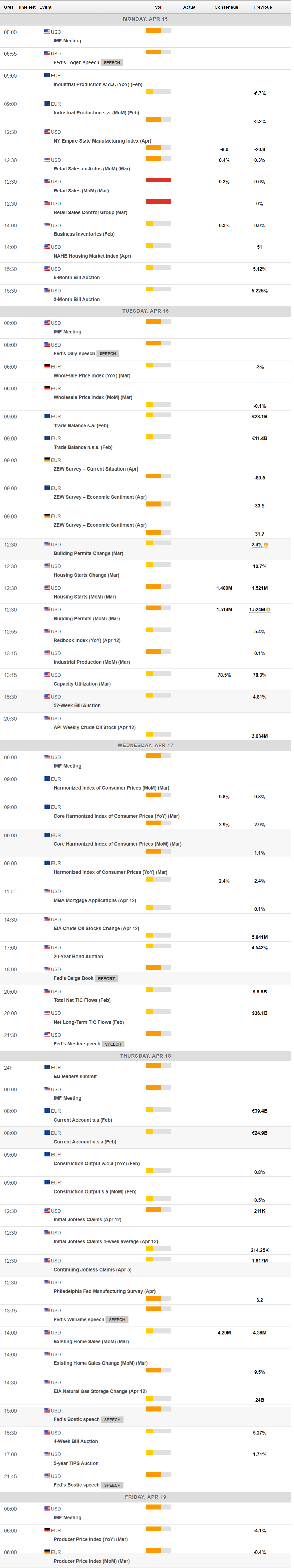 The macroeconomic calendar will be much lighter next week, as the most relevant release will be US March Retail Sales. The International Monetary Fund (IMF) meeting and multiple Fed speakers will also stand out in the upcoming days.