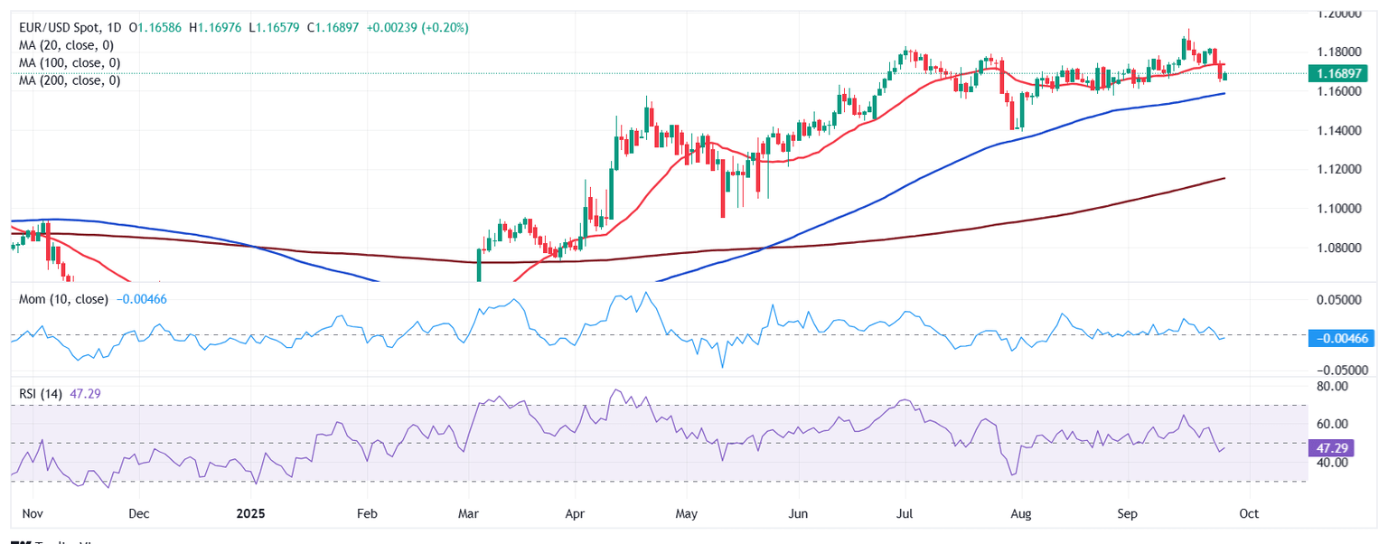 The EUR/USD pair trades just below the 1.1700 mark as some profit-taking and the better market mood limit demand for the USD. Still, technical readings in the weekly chart suggest the ongoing decline remains corrective. The pair remains above all its moving averages, with the 20 Simple Moving Average (SMA) providing relevant support at around 1.1600. Technical indicators, in the meantime, continue to head marginally lower within positive levels, still far from suggesting a steeper slide but skewing the risk to the downside.