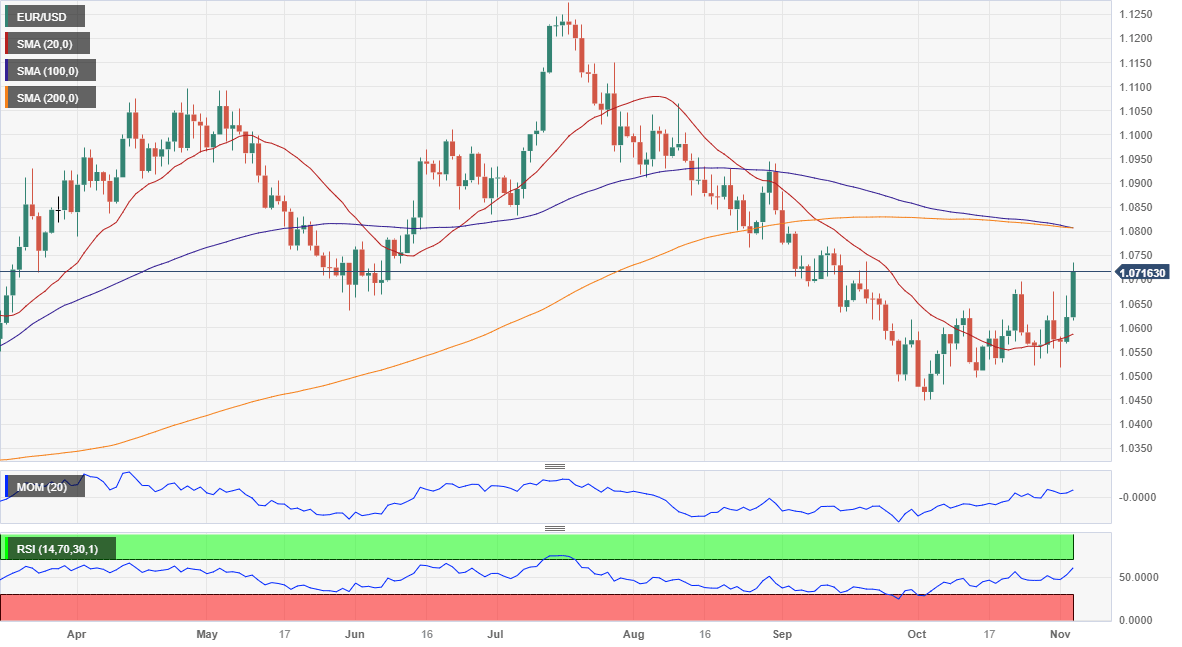 The EUR/USD pair struggled for direction throughout the week, unimpressed by growth-related figures and central banks’ announcements. The pair finally found directional strength on Friday, following the United States (US) Nonfarm Payroll report, and reconquered the 1.0700 threshold.