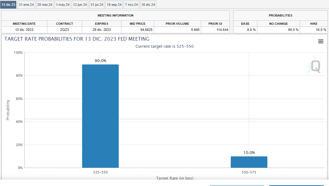 According to the CME Fed WatchTool, the odds for a Fed hike in December fell to 10% from 27% before the central bank’s announcement. The chances of a January hike also decreased.