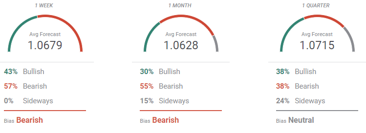 According to the FXStreet Forecast Poll, EUR/USD will remain bearish in the near term, although the late bullish breakout suggests otherwise, catching analysts off guard. Bears are still a majority in the weekly and monthly views, while the number of sellers has decreased. In the quarterly perspective, bulls and bears converge at 38%, with the pair seen holding above the 1.0700 mark on average.