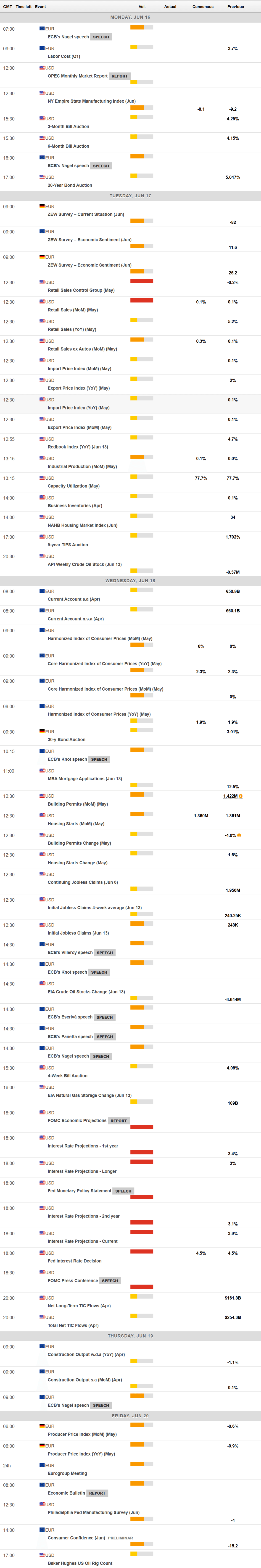 Across the ocean, the US will release May Retail Sales on Tuesday, while the Federal Reserve will announce its decision on monetary policy meeting after a two-day meeting on Wednesday.