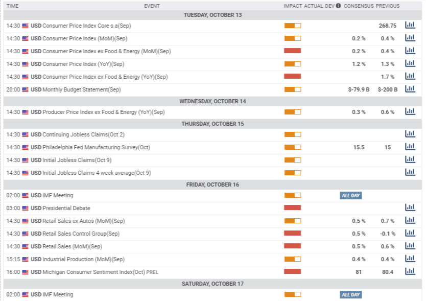 US coronavirus statistics may also gain more traction, as they are now rising in most American states as the temperatures are falling. Are consumers refraining from shopping? The University of Michigan's preliminary Consumer Sentiment Index for October could provide insights into the current situation. More importantly, retail sales data for September is set to rock markets.