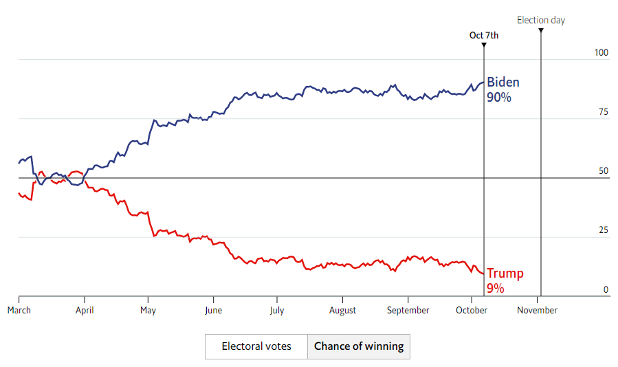 If Trump sticks to his word and keeps his fellow Republicans away from the negotiating table, it would increase the elections' already growing focus. As mentioned earlier, Biden has a significant lead, and the focus could shift to polls around tight Senate races.