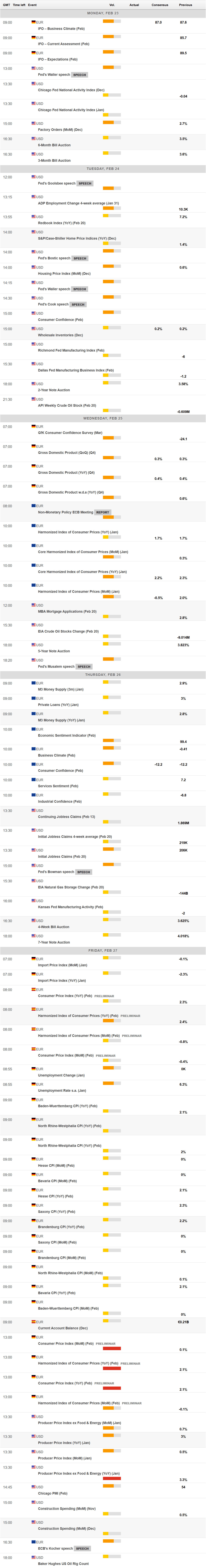 The final week of February will be light in terms of first-tier data. The US will publish January Producer Price Index (PPI) figures, while Germany will unveil the flash estimates of the February Harmonized Index of Consumer Prices (HICP).