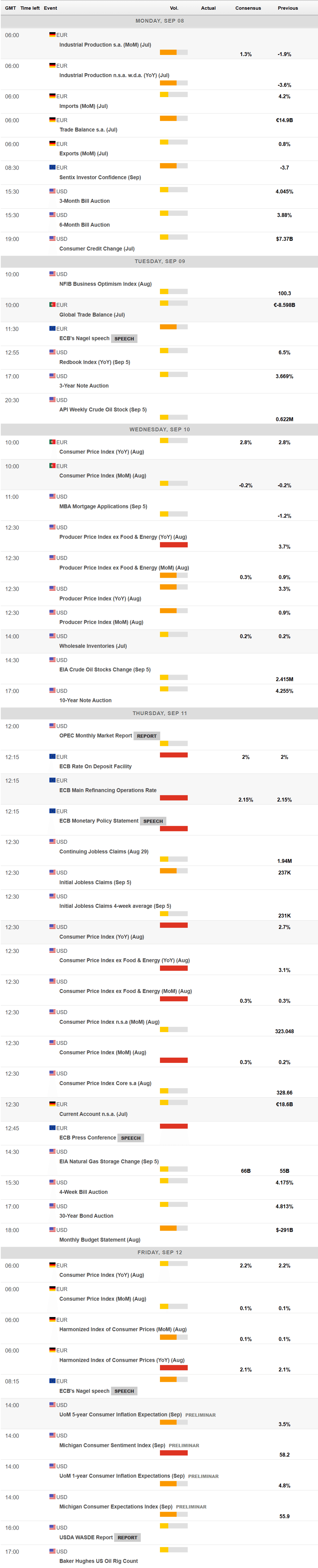 Other than the ECB, the macroeconomic calendar will include on these days a couple of relevant US figures. The country will publish August Consumer Price Index (CPI) figures, last standing at 3.1% YoY. It will also release July PPI figures and the preliminary estimate of the Michigan Consumer Sentiment Index for September.