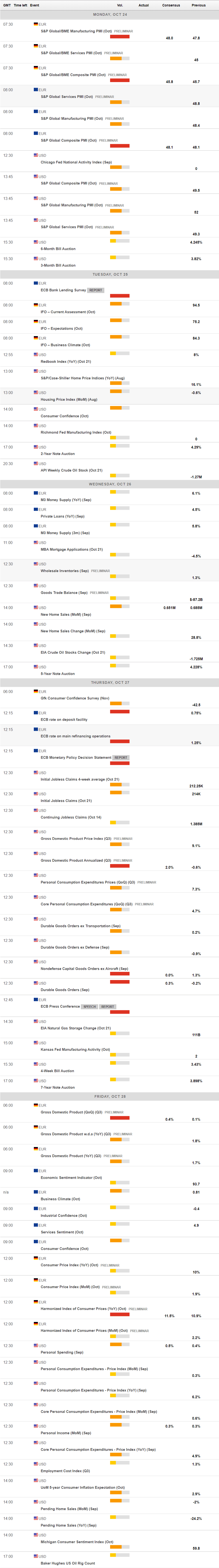 The US will publish October CB Consumer Confidence on Tuesday, expected to have eased to 105.6 from 108 in September, while Germany will unveil the IFO survey on Business Climate for the same month.