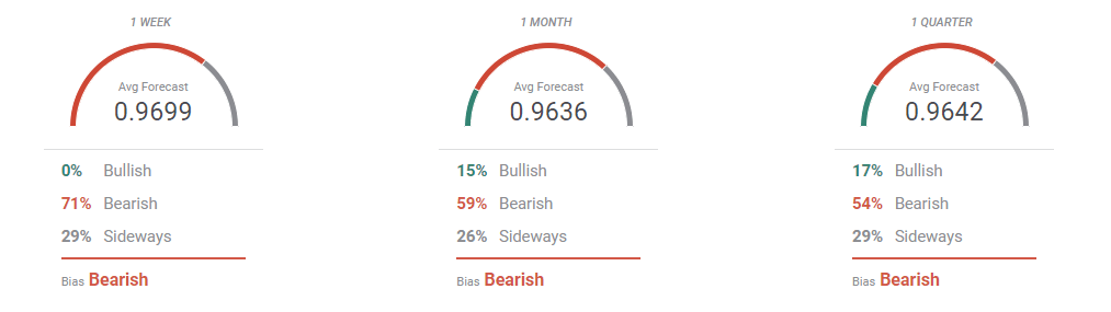The EUR/USD FXStreet Forecast Poll shows that bears took full control of the pair. 71% of the polled experts are betting for lower lows in the near term, while the number of sellers remains above 50% in the monthly and quarterly perspectives. The pair is seen on average below the 0.9700 mark, which increases the risk of a bearish breakout toward fresh multi-year lows below the 0.9535 level.