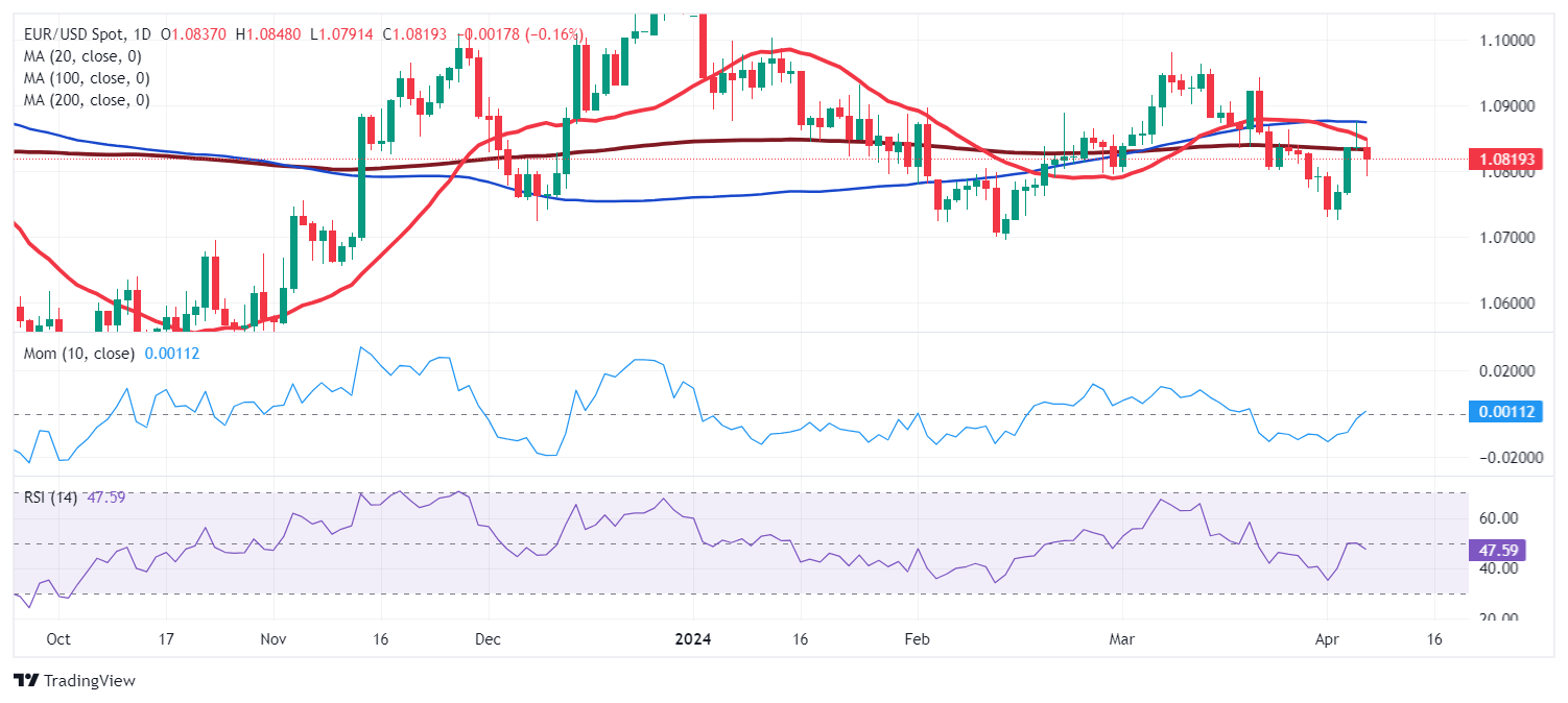 The pair changed course once again ahead of the weekly close amid stronger-than-anticipated US employment-related data. Mid-week, the ADP survey on private job creation showed the private sector added 184K new positions in March. Finally on Friday, the Nonfarm Payrolls (NFP) showed the economy added 303K new jobs, much better than the 200K expected. Also, the Unemployment rate fell to 3.8% from 3.9%. Finally, Average Hourly Earnings rose 0.3% in the month and are up 4.1% over the past year. The solid employment report put investors in an uncomfortable position. On the one hand, it indicates the US economy keeps growing at a healthy pace, which means better earnings and profits. On the other, it also supports the Fed’s case of holding rates at the cycle's peak. US policymakers have repeatedly noted that a loosening labor market would be a pre-condition for rate cuts, alongside easing inflation.