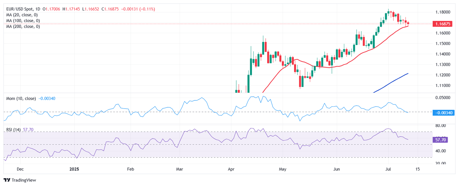 The EUR/USD pair edged lower in the past week, settling a handful of pips below the 1.1700 mark, further retreating from the multi-year peak posted early in July at 1.1830. Financial markets kept revolving around the United States (US) President Donald Trump's targets. With geopolitical woes cooling down, Trump’s focus returned to tariffs, and the Federal Reserve’s (Fed) wait-and-see stance on monetary policy.