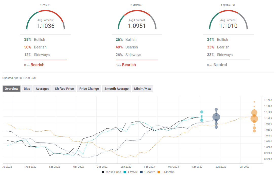 According to the FXStreet Forecast Poll, the sentiment for EUR/USD suggests that the pair will continue to consolidate over the next week, hovering around 1.1000/50. Looking at the quarterly perspective, analysts on average see the EUR/USD pair at 1.1010. Of those polled, 33% expect to see the price below current levels in three months, while 34% anticipate it to be above.