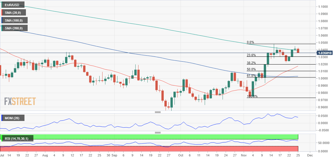 - EUR/USD is technically bullish in the long term, but still needs to clear 1.0480.