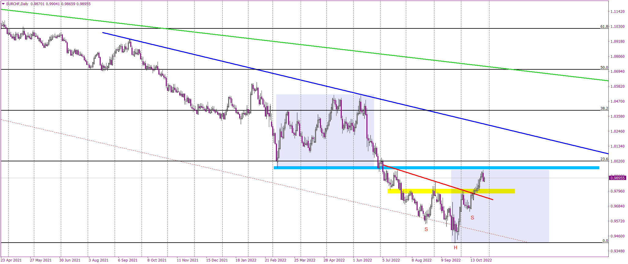 In today’s analysis, we’re taking a look at a very interesting situation on the EURCHF, where the price created a nice Inverse Head and Shoulders pattern. It was mid-October when the price broke the neckline of this formation (red), giving us a legitimate buy signal. Currently, the price is close to an important horizontal resistance on the 0.997 (blue). Interestingly, the current bullish correction is almost the same as the one from March-May (in terms of the ~550 pips depth). This may not be the strongest indicator but it’s definitely something interesting to look at.
