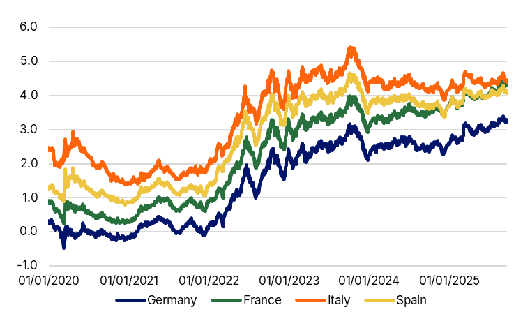 30-year euro area sovereign yields, %