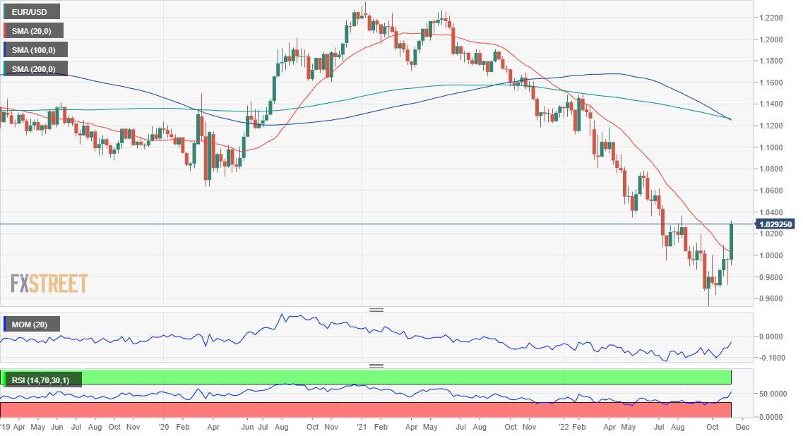 The EURUSD pair soared to 1.0323 on Friday, its highest since early August, to end the week not far below. The US Dollar started the week on the back foot, as an encouraging Nonfarm Payrolls report (NFP) from the previous Friday lifted the market’s mood, and investors tepidly bet on a potential Federal Reserve (Fed) pivot. Throughout the first half of the week, the greenback remained under pressure, but speculative interest was extremely cautious ahead of the release of first-tier data.