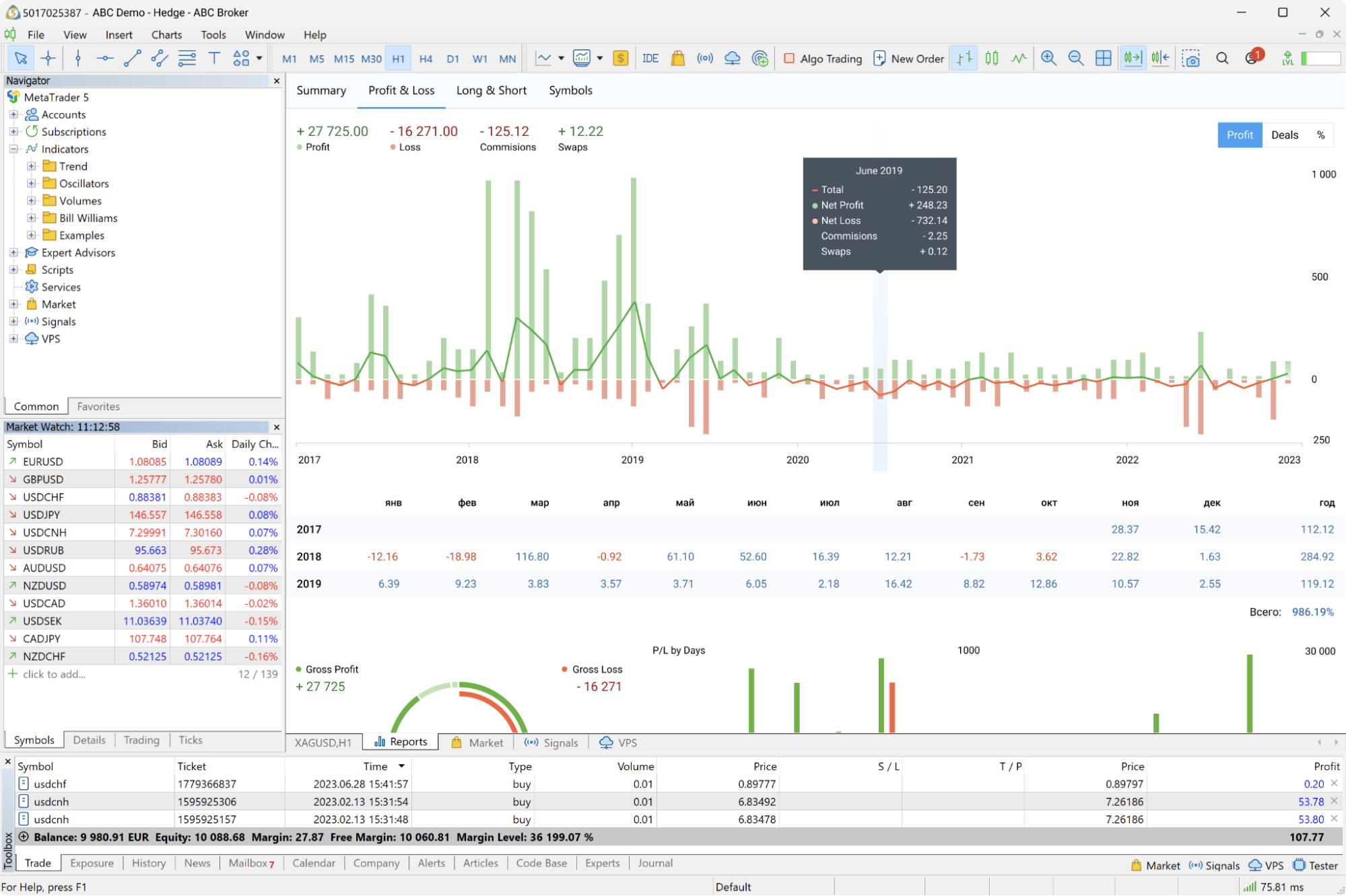 For instance, a user can choose to analyze the profitable trading operations for the symbols EUR/USD and GBP/USD made by trading bots or comb through manual trading actions concerning the pairs.