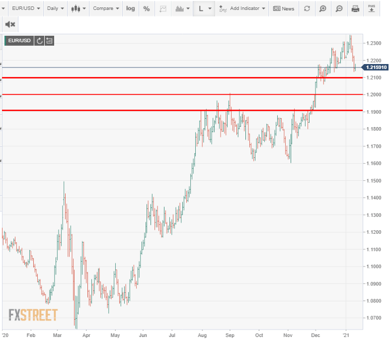 Joseph Trevisani: Yes, but we have been there already. I think the currency markets are in a holding pattern until there is evidence that the hoped-for change in pandemic and economics, is on the way. For the euro important support is at 1.2100 and 1.1910 with a minor at 1.2000.