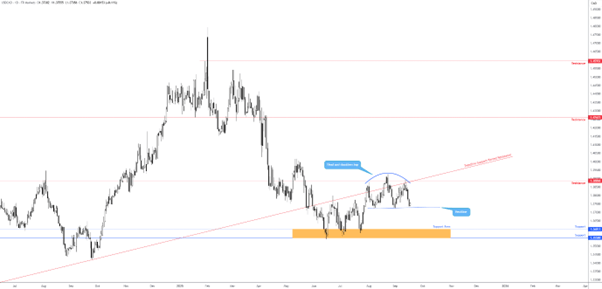 The BoC are also expected to reduce its overnight rate by 25 bps from 2.75% to 2.50%, with another cut on the table by the end of this year. Despite the BoC’s core inflation measures remaining elevated at 3.0%, the deterioration in the jobs market and economic activity contracting in Q2 25 has clearly reinforced market expectations.