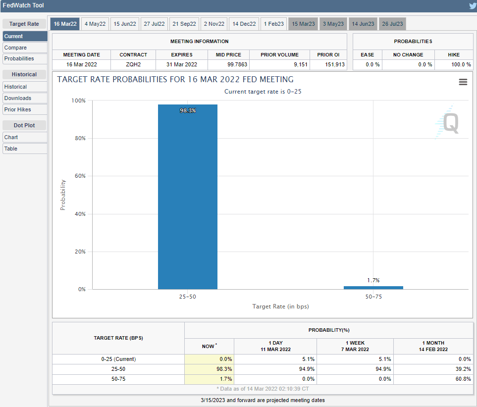 Markets are certain the fed hike will be 0.25%. Fed futures on Monday had the odds at 98.3%.