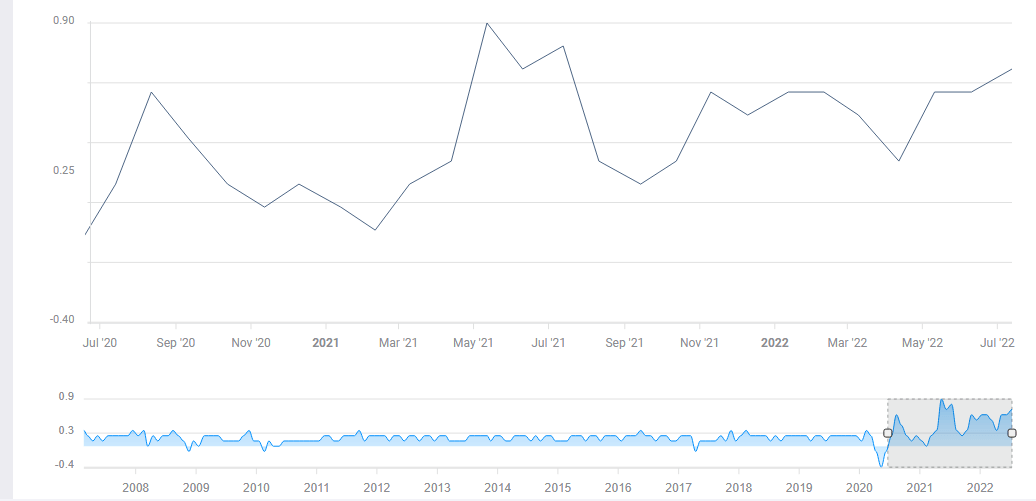 The Fed's policy acts with a lag, and it needs to be aware not only of current price rises but also of expectations for the future. Returning to the June event, Powell cited the increase in the University of Michigan's long-term inflation expectations figure as a reason for a 75 bps move rather than the 50 bps originally telegraphed.