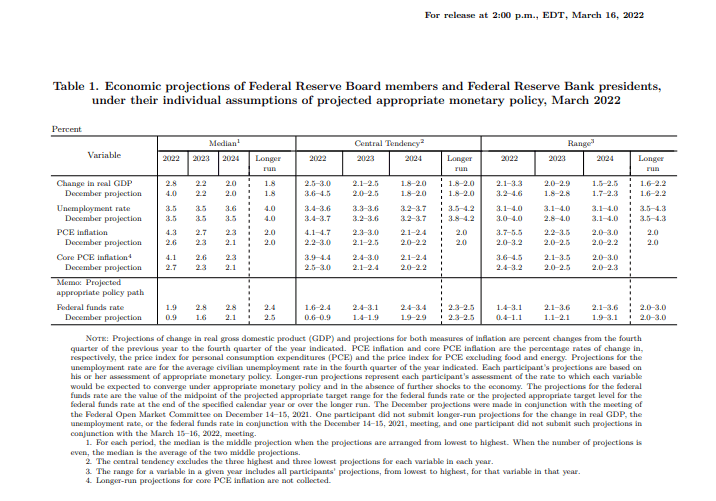 In addition to today’s increase, the bank's Projection Materials posited six more rate increases this year with an median estimate for a 1.9% base rate after the final bank meeting on December 14. The prior set of projections from December 2021 had three hikes to year-end and a 0.9% fed funds rate.