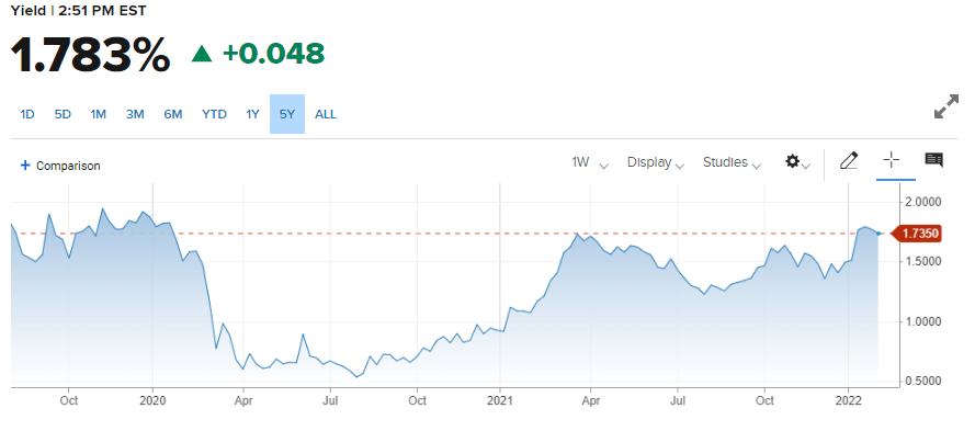 The Fed has been buying $120 billion a month in Treasuries and mortgage securities since March 2020, before dropping the amount by $15 billion in November and then $30 billion in December. The program was intended to force Treasury yields and their commercial equivalents below historical limits, providing extended support for the pandemic economy. In that the governors were successful. The 10-year yield reached a record low close of 0.498% on March 9, 2020 and stayed below 1% for the next ten months.