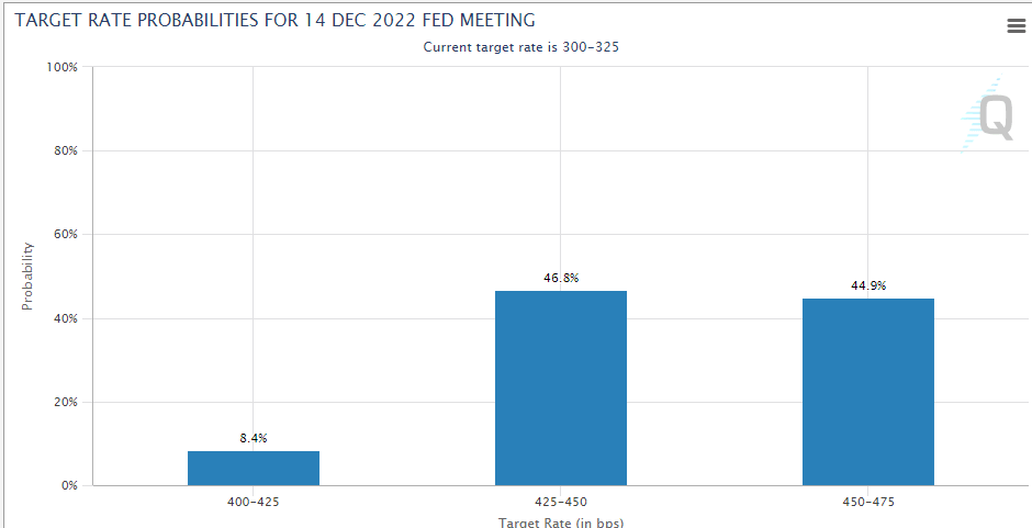 The probability of a 75 bps hike in December stands at only 44.9% at the time of writing: