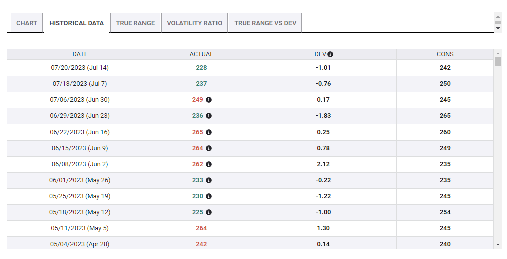 Initial Jobless Claims data. Source: FXStreet